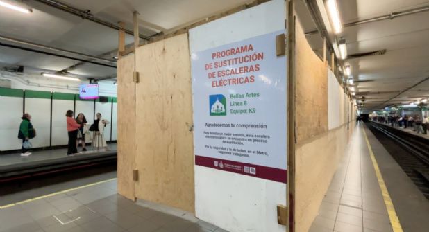El Metro de la Ciudad de México informó que, por trabajos de sustitución de dos escaleras eléctricas en la estación Bellas Artes de la Línea 8, el ingreso y salida de usuarios se realizará únicamente por los andenes laterales.