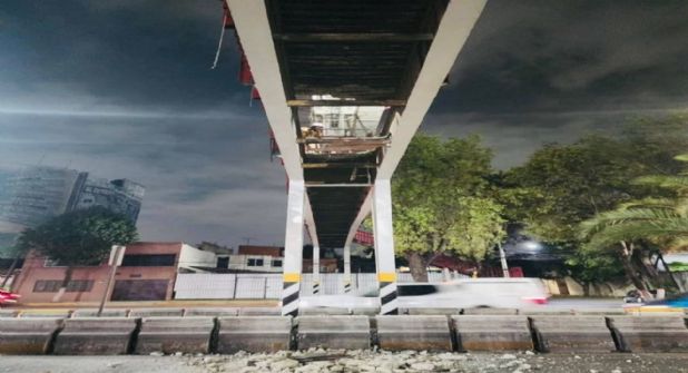 Aproximadamente tres metros de concreto se desprendieron de un puente peatonal en el centro de Tlalnepantla, cayendo sobre la avenida Mario Colín. Afortunadamente, no se registraron personas lesionadas, pero el incidente evidenció el avanzado deterioro de la estructura, que llevaba más de 40 años sin el mantenimiento adecuado.