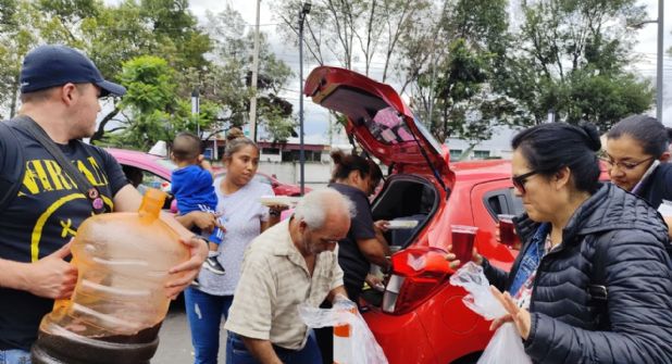 María Hernández, junto con sus hermanas y su bebé de menos de un año, llevó pollo enchilado, arroz, tortillas y agua de Jamaica al hospital de Traumatología Magdalena de las Salinas del IMSS y se solidarizó con los familiares de las víctimas de la explosión en el Puente de la Concordia.
