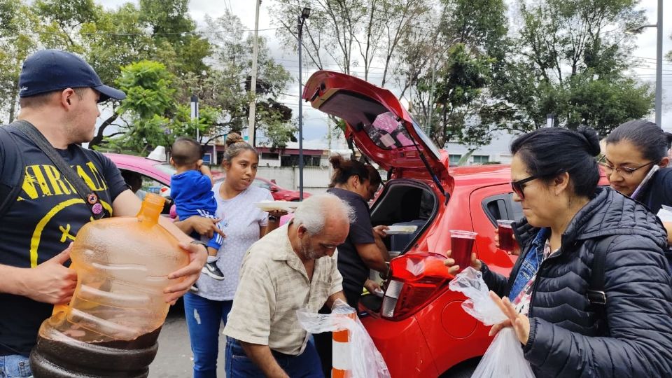 Personal de la Policía Bancaria acudió también a hospitales de Iztapalapa para ofrecer comida, café y pan de dulce a las personas que pasaron la noche esperando noticias de sus familiares.
