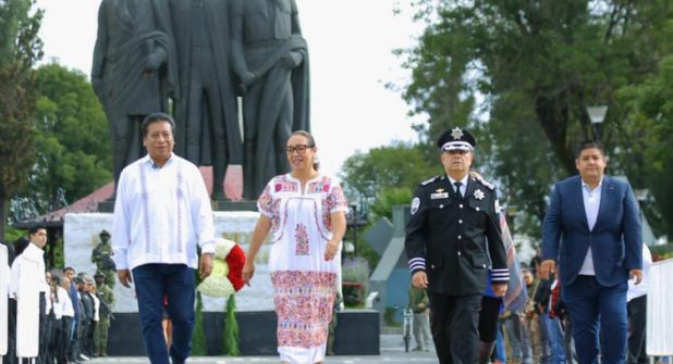 Tras realizar guardia solemne al pie de la Trilogía, en honor a Morelos, Galeana y Matamoros, la alcaldesa Azucena Cisneros Coss, acompañada del secretario del Ayuntamiento Faustino de la Cruz, regidores e integrantes del gabinete, además del comisario de Seguridad Ciudadana y Tránsito Municipal, capitán de Navío de la Secretaría de Marina, Edgar Machado Peña, subió al balcón de la presidencia municipal para autorizar el inicio del desfile.
