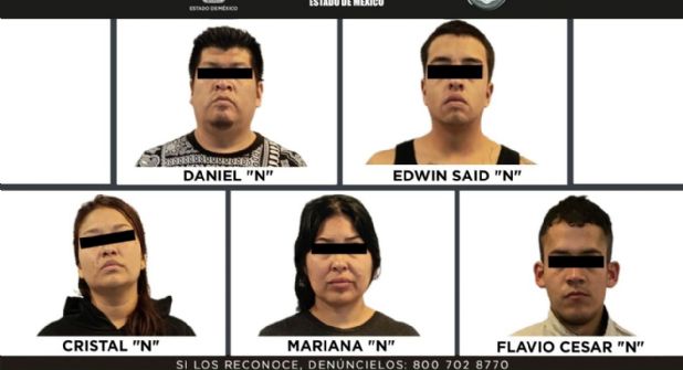El operativo se llevó a cabo en la colonia Ojo de Agua, en el municipio de Tecámac, donde fueron detenidas cinco personas identificadas como Flavio César “N”, Edwin Said “N”, Daniel “N”, Mariana “N” y Kristal “N”, quienes fueron trasladados a un penal regional y puestos a disposición de la autoridad judicial.
