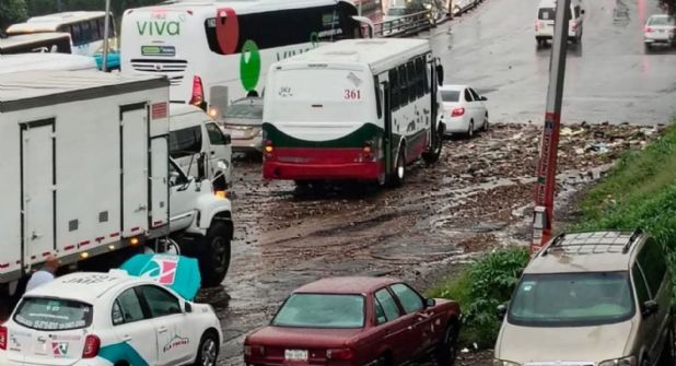 La vía López Portillo, una de las más transitadas del Valle de México, presentó encharcamientos desde la zona de La Bandera en Tultitlán hasta Coacalco, con tránsito prácticamente detenido.