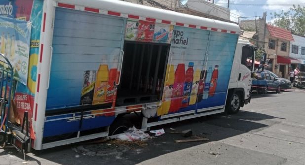 Un camión repartidor de refrescos quedó atrapado en un socavón sobre la calle Cambio de la Amistad, en el Parque Central 88 de la colonia Campestre Aragón, alcaldía Gustavo A. Madero. La llanta trasera de la unidad se hundió en el agujero, pese a que previamente vecinos habían difundido un video para advertir sobre el desperfecto en la vía.