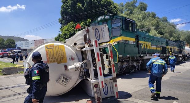 El conductor del tren y el operador de la pipa resultaron con golpes leves. Este último será puesto a disposición de las autoridades para deslindar responsabilidades.