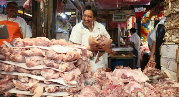 “Hoy es el aniversario de la Merced, inaugurada el 24 de septiembre de 1957”, explica Edgar Mendieta, vocero del Movimiento Plural de Comerciantes. “Este complejo de mercados consta de la nave mayor, la nave menor, el paso a desnivel, el mercado de comidas, el Banquetón, el Gómez Pedraza, el de dulces... todos con el nombre de la Virgen de la Merced, por el convento de los mercedarios”.