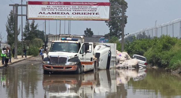 El lugar del siniestro se registró a un costado de la alameda oriente. En tanto, el camión pesado transportaba 10 toneladas de papel picado reciclable, sin embargo en su intento de cruzar el anillo Periférico hacia el Bordo de Xochiaca y al parecer por los baches de la zona, aunado a la gran inundación de la vialidad, el conductor perdió el control.