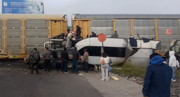 ESTADO DE MÉXICO.- Un autobús de pasajeros quiso ganarle el paso a un tren este lunes en el municipio mexiquense de Atlacomulco, pero fue arrollado dejando un saldo de 10 personas muertas y al menos 45 heridas.