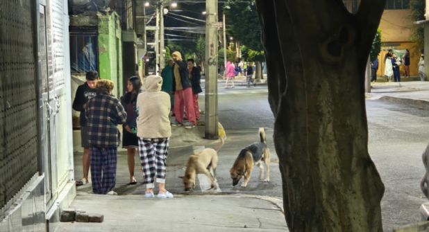 El movimiento fue apenas perceptible, pero el nerviosismo estaba a flor de piel. En la colonia Alamos, vecinos bajaron en batas, pijamas, pantuflas. Algunos también acompañados de sus perros.