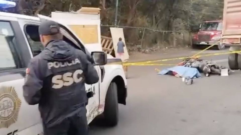 Esta mañana, un motociclista perdió la vida al impactarse contra la parte trasera de un camión de carga que transportaba gravilla para construcción, en el cruce de cruce de la Av. Bosques y Cuilotepec, en la colonia Lomas de Cuilotepec, en la alcaldía Tlalpan.