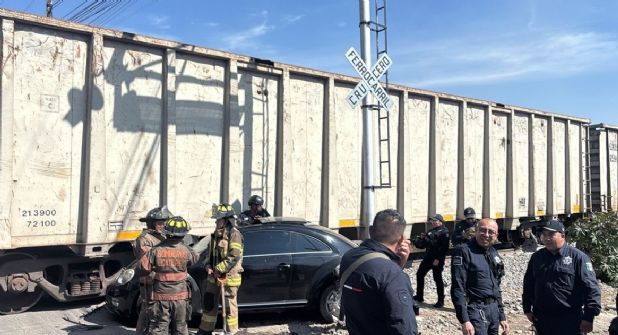 Un tren impactó y arrastró a un vehículo particular que intentó ganarle el paso en la colonia Jardines de Morelos, sección Playas, en el municipio de Ecatepec de Morelos, Estado de México.