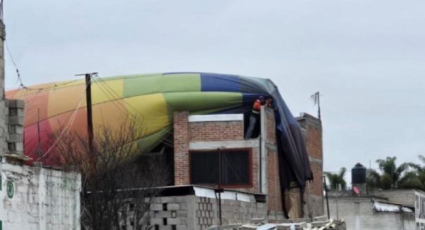 En Teotihuacán, un globo aerostático se desplomó sobre una vivienda, provocando daños materiales, pero sin que se reportaran personas lesionadas.