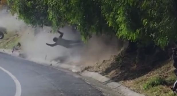 El video muestra el momento en que toma la curva, inclina el cuerpo y hace la acción de contramanillar, que es inclinar la moto para tener mayor precisión en curvas pronunciadas. Sin embargo, no lo hace con la precisión debida y derrapa hacia un cerro desde donde tomaban video y fotografías de colección para motociclistas.