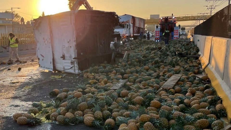 La volcadura de un camión tipo tortón que transportaba varias toneladas de piña provocó caos vial en la autopista México-Puebla, a la altura del kilómetro 24, con dirección a la Ciudad de México.