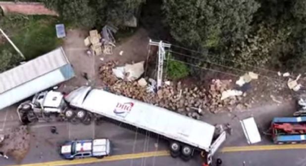 Las primeras versiones apuntan a que el conductor perdió el control de la pesada unidad, volcó y derribó un poste a la altura del perímetro del municipio de Huixquilucan.