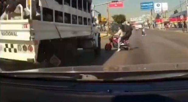 Las imágenes difundidas muestran al vehículo de la Guardia Nacional, con placas de circulación 303477, avanzando pese a que el semáforo marcaba alto para su sentido de circulación. Segundos después, la unidad embiste a los motociclistas, quienes salieron proyectados y quedaron tendidos sobre el asfalto.