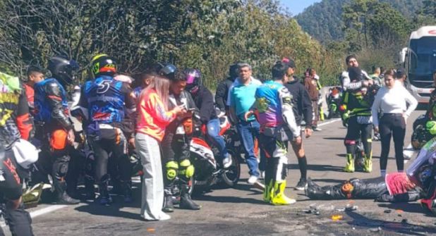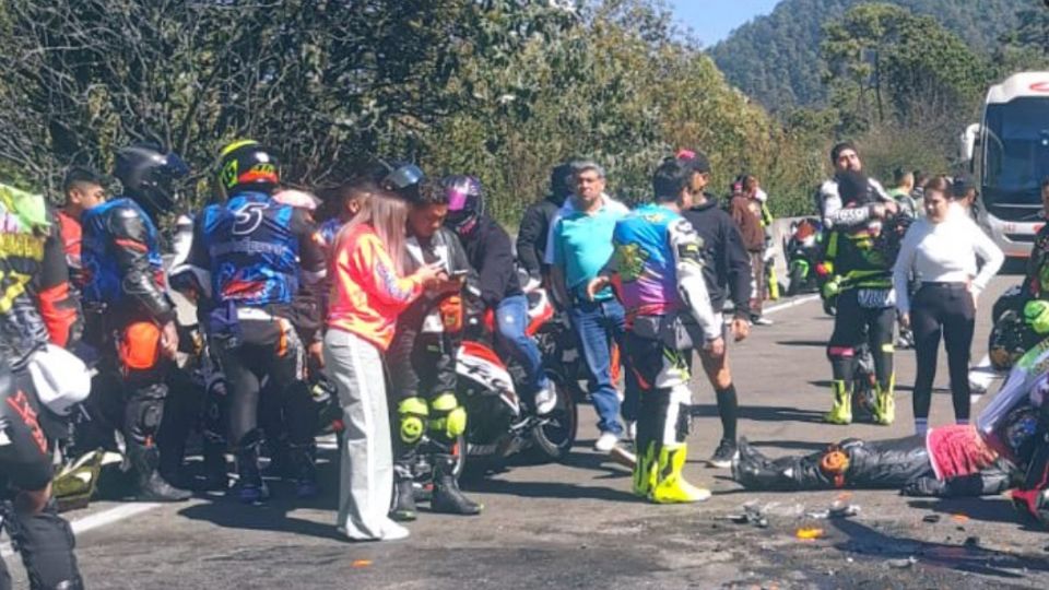 Un video de un motociclista captó el momento en que otro motociclista al que al parecer acompañaba en su trayecto y que viajaban a exceso de velocidad en la autopista México-Cuernavaca se impactó de frente al alcanzar a un vehículo particular.