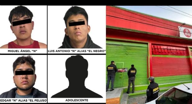 Después de que hombres encapuchados incendiaron una tienda 3B en Valle de Chalco, Estado de México, que dejó con graves quemaduras a un niño de dos años de nombre Henry, y a su padre, de 49 años, la Fiscalía General de Justicia del Edomex (FGJEM) realizó la detención de cuatro implicados en los hechos violentos.