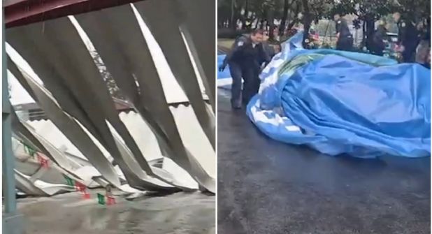 Autoridades informaron que no se registraron personas lesionadas, pese a los daños visibles en la estructura que cubre el patio del plantel.