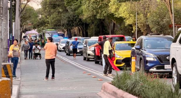 La Silla Rota documentó que los franeleros operan frente a elementos de la Subsecretaría de Tránsito, quienes permanecen en la zona sin impedir los cobros ni retirar a quienes apartan lugares en la vía pública.