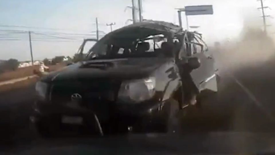 Contexto: en el video difundido en redes sociales se observa que el reloj marcaba las 18:06 horas, cuando la camioneta explotó y se incendió, debido a ello, el conductor perdió el control y el vehículo impactó con el muro de contención de la autopista México-Pachuca.