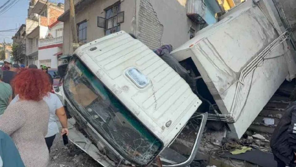 Un camión de carga perdió el control mientras descendía por una calle de Calvario y 20 de Noviembre, en la comunidad de San Mateo Nopala, en el municipio de Naucalpan de Juárez, Estado de México, lo que provocó un aparatoso accidente que derivó en la muerte de una mujer y varios daños materiales.