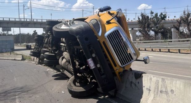 Un accidente en el puente La Concordia, en Iztapalapa, dejó un tractocamión volcado sobre la arteria que conecta con la Calzada Ignacio Zaragoza.