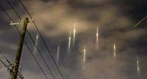 De acuerdo con expertos en temas de las capas más altas de nuestra tierra, es decir, de la atmosfera este es un fenómeno natural; dicho fenómeno se produce cuando la temperatura es menor a -20°c, es cuando el agua se cristaliza microscópicamente en la atmósfera, de esta forma refleja la luz artificial y se generan esta especie de pilares de luz.