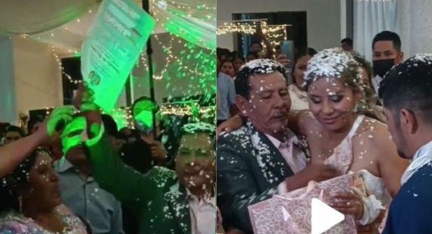 Fue así que, de un momento a otro, se observa a los posibles padres de la novia acercarse a la pareja protagonista de la boda y sacar un sobre amarillo que, de acuerdo con lo descrito por el autor del video, son las escrituras de unos terrenos.
