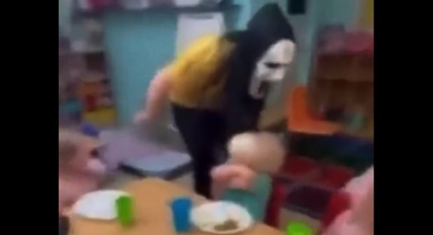 En la grabación se puede escuchar los gritos y el llanto de los niños mientras las maestras van de habitación en habitación con la máscara de "Scream".