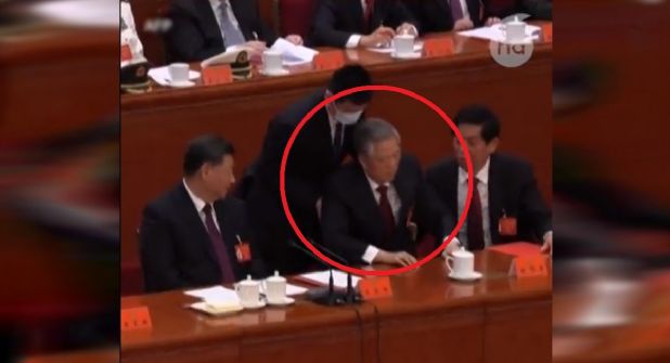 En redes sociales circula un video en el cual se observa el momento en el que Xi Jinping ordena que Hu Jintao, el anterior ex presidente de China, sea sacado por la fuerza del congreso del Partido Comunista. En las imágenes se aprecia como el ex presidente hace el intento de resistirse, sin embargo, al final es sacado a la fuerza.