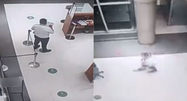El video llama la atención debido a que todo comienza cuando las puertas de la recepción de un hospital se abren y al instante el oficial que recibe a los pacientes se levanta para tomar los datos del paciente.
