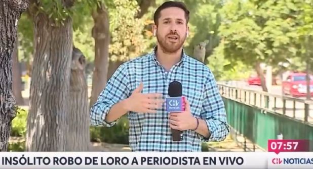 En un episodio más de cosas increíbles que suceden en el mundo, un periquito verde se aprovechó de un reportero que realizaba una transmisión en vivo para un programa de noticias en Chile; poco pudo hacer el hombre para evitar ser víctima del robo.