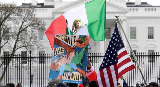 Con banderas de varios países, cientos de migrantes se reunieron este lunes frente a la Casa Blanca para pedir al presidente Joe Biden que cumpla su promesa de campaña y solucione la estadía legal de unos 11 millones de indocumentados en el país.