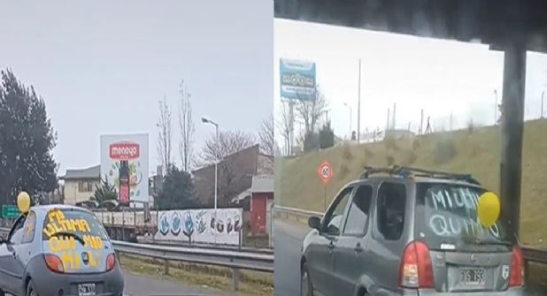 A través de su cuenta de TikTok, Mirta publicó el momento en que una familia celebraba, con una caravana de autos sobre la autopista, la última quimioterapia de la pequeña Mily.