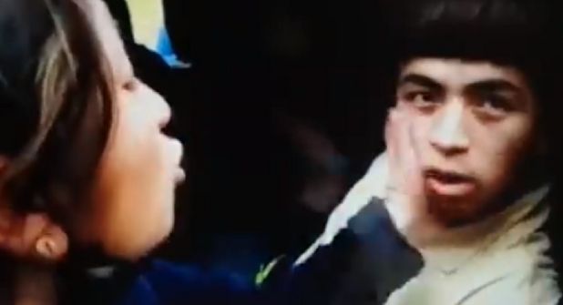 En el video se ve que su mamá llega al lugar y le lanza una cachetada. “¡Cállate, aprende a respetar!” le dice la señora a su hijo, para continuar con la llamada de atención.
