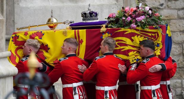 El féretro fue transportado por Londres en una cureña de la Marina británica de 1901, que también había sido utilizado en el funeral de su padre, Jorge VI, y que fue tirado con cuerdas por más de cien marineros al son de una marcha fúnebre.