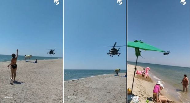 Turistas que vacacionaban en la playa ucraniana del mar de Azov gozaban de un día soleado y tranquilo cuando aparecieron helicópteros rusos con estruendosos ruidos en pleno conflicto militar entre Ucrania y Rusia.
