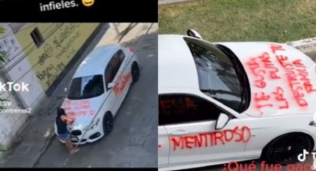 Tal es el caso de una mujer quien fue captada en un contenido de TikTok pintando el auto de su esposo a quien le reclamó su infidelidad rayando el vehículo con frases alusivas a ello.