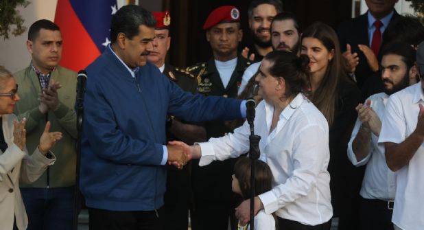 Horas después de ser liberado por el gobierno de Estados Unidos, el empresario colombiano, Alex Saab fue recibido en Caracas por el presidente de Venezuela, Nicolás Maduro desde el palacio presidencial Miraflores. Tras aterrizar en el Aeropuerto Internacional Simón Bolívar, llegó al encuentro con Maduro acompañado de su esposa Camilla Fabri y la primera dama Cilia Flores. Maduro, quien lo recibió con abrazos, dijo que Saab era un "hombre valiente y patriota", quien resistió "40 meses las condiciones más adversas y dolorosas de secuestro".
