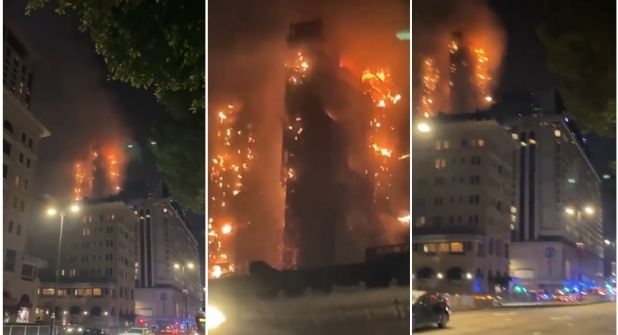 EL caso se difundió rápidamente en las redes sociales, donde se viralizó la imagen del edificio ardiendo en llamas, mientras se pueden escuchar el sonido de las explosiones, así como los cuerpos de emergencia intentando apagar el incendio.