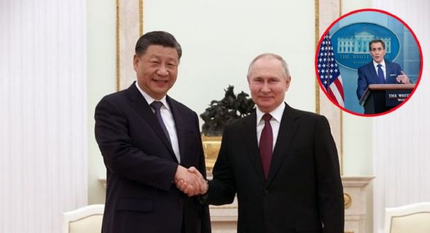 De acuerdo con John Kirby, uno de los portavoces del Consejo de Seguridad Nacional de la Casa Blanca, la visita del presidente chino, Xi Jinping a Moscú, donde se reunió con su homólogo Putin, donde China y Rusia exigieron "el fin de todos los pasos que contribuyen a la escalada de la tensión y a la prolongación de las hostilidades".