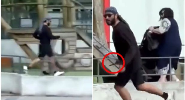 Videos grabados con un teléfono celular que fueron difundidos en redes sociales, muestran al presunto autor vestido de negro con gafas de sol, barba y un pañuelo atado en la cabeza, huyendo con el puñal todavía en su mano derecha, mientras era perseguido por varias personas.