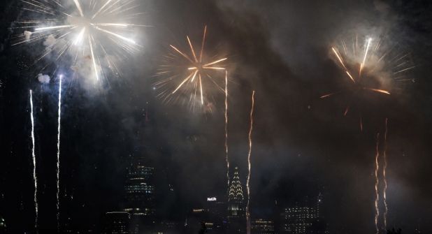 Algunas ciudades de Estados Unidos optaron ayer por espectáculos de luz -valiéndose de las posibilidades que dan los drones-, pero en Nueva York los drones sencillamente se incorporaron al espectáculo como introducción, siendo el plato fuerte la colección gigantesca disparada desde cinco barcazas situadas en mitad del río.