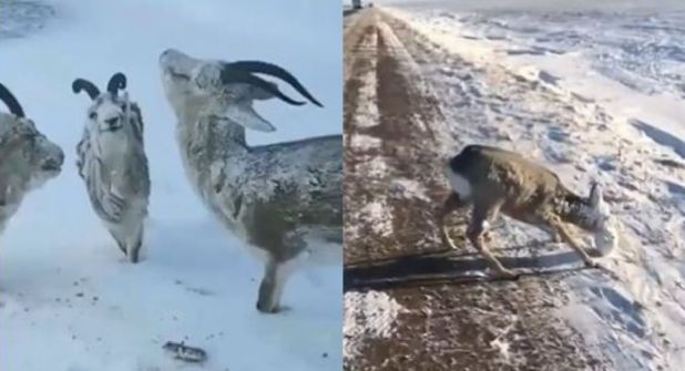 Uno de los videos habría sido grabado por un hombre mientras recorría el campo y se percató de que a su alrededor había varios animales congelados debido a las bajas temperaturas.