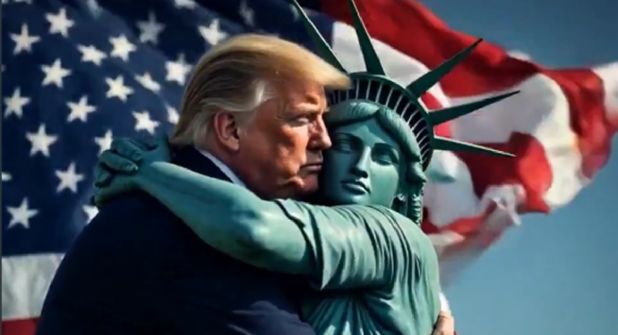 Además de imágenes y videos creados con inteligencia artificial para escenificar lo que habría sido la celebración del triunfo electoral del republicano, también se han difundido imágenes en las que se hace jactancia de la polémica relación de quien será el presidente de EU a partir de 2025, con mandatarios extranjeros tradicionalmente señalados como enemigos de la nación.