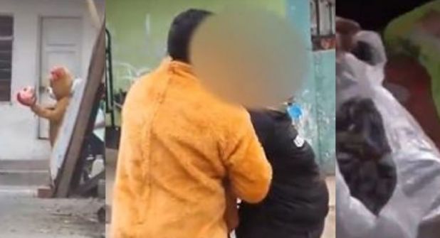 Según el video, la osita cariñosita llegó con un cartel que decía “Eres mi razón para sonreír” y se colocó en las afueras de la casa de la sospechosa. La mujer, aún sin identificar, salió sorprendida y descendió por la escalera desde un segundo piso.