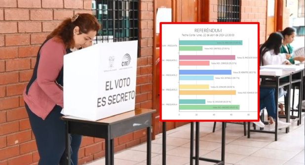 Con más de la mitad de los votos computados, los resultados del referéndum y consulta popular convocados por el presidente de Ecuador, Daniel Noboa, para consultar la opinión del pueblo sobre la realización de reformas legales a materias como la seguridad, el trabajo y la inversión, entre otras; muestran una amplia aprobación en la mayoría de las preguntas realizadas.