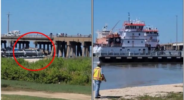 La emisora KTRK, en base a fuentes policiales del condado de Galveston, Texas, aseguró que una pieza grande del puente se cayó al agua. Además, compartió fotografías en las que se ve a la barcaza ser alcanzada por enormes trozos de concreto.