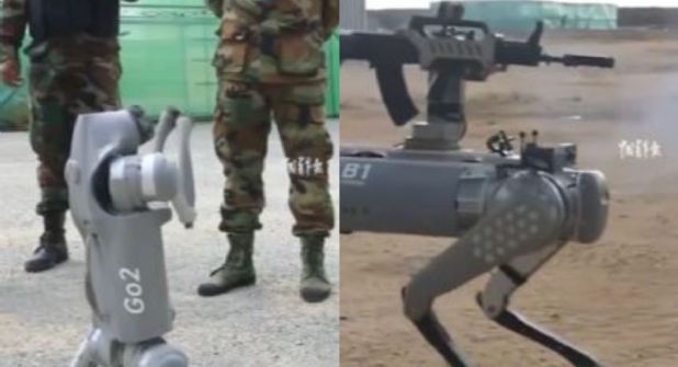 En redes sociales se hizo viral un video de la cadena estatal CCTV, donde se observa el uso militar de perros robots durante ejercicios militares con Camboya y las Fuerzas Armadas de China muestran un perro robot con un rifle automático montado en su espalda.